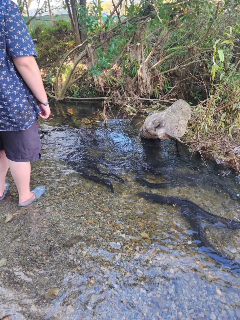Roni from Mountains to Sea guided rangatahi on a bush walk around Battle Hill Forest Farm Park. Participants met local tuna (eels) and collected macroinvertebrates (insects) from the stream. They identified the diverse species they collected and discovered how the presence (or absence) of certain types indicated the health of freshwater ecosystems. Our testing concluded the stream was very healthy and the rangatahi had great time connecting to te awa – some even got their feet wet!
